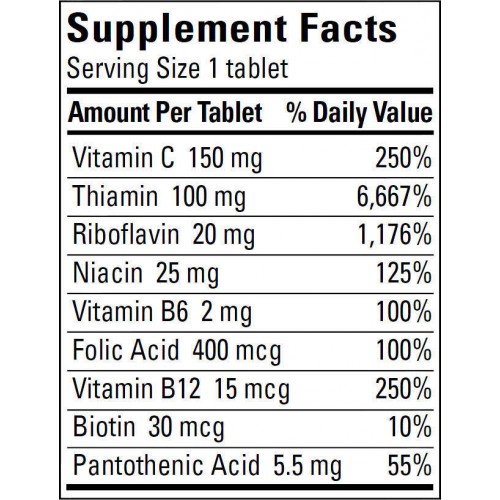B维生素对细胞能量生成和神经系统的正常功能至关重要†超级B复合物配方含有所有8种维生素B(维生素,核黄素,烟酸,泛酸,维生素B6,生物素,叶酸和维生素B12)作为维生素C. *