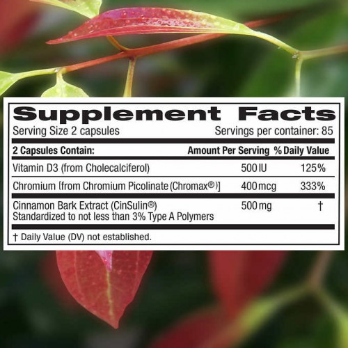 美国 Trunature 肉桂500亳克+铬400微毫克+500IU D3, 170粒胶囊